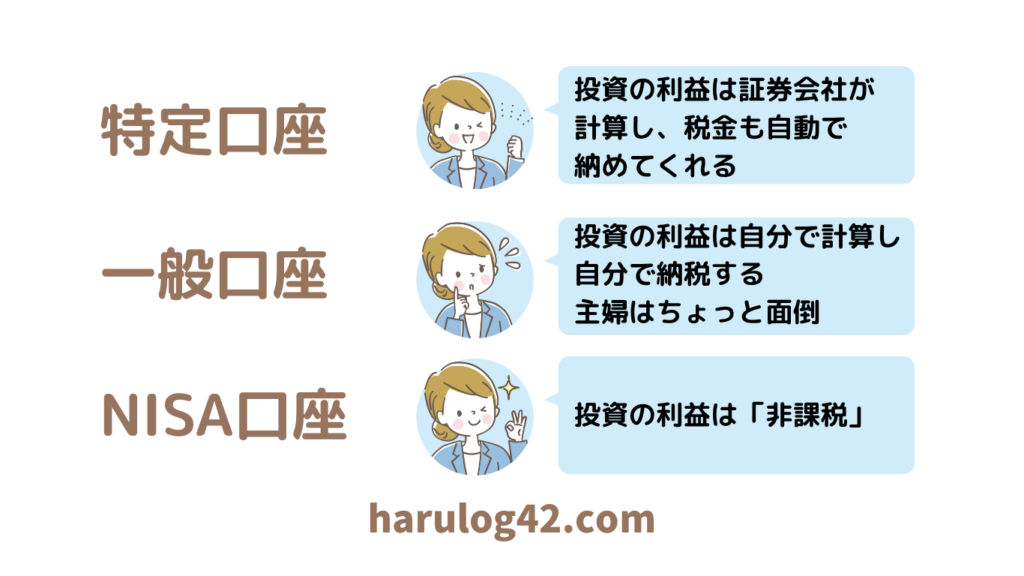 「特定口座(源泉徴収あり)+NISA口座」の組み合わせを選んでおくと安心です。