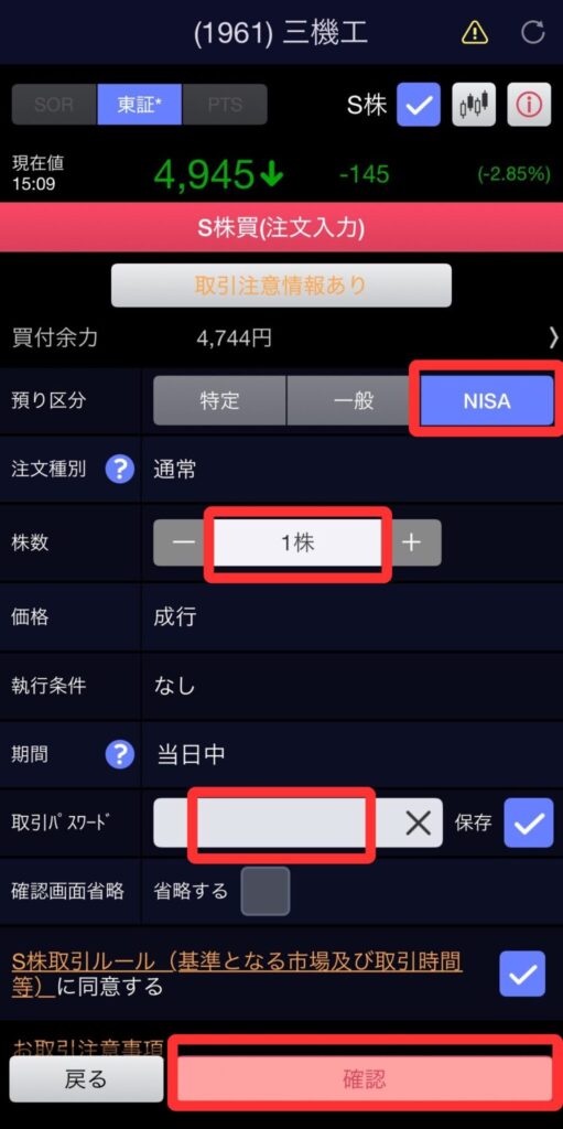 必要項目をいれて、確認を押せば購入確認にすすめます