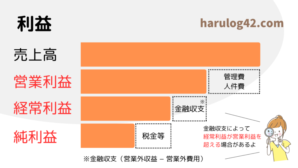 経常利益 | 営業利益に、金融収支も入れたもの | ー |
