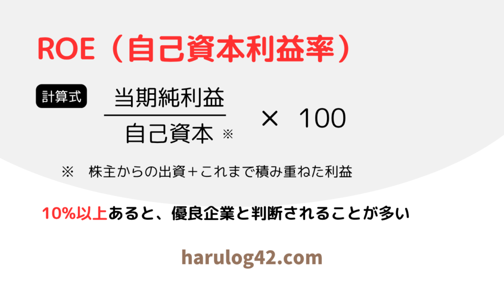→ 株主が出したお金(自己資本)で、どれだけ利益を生んだか