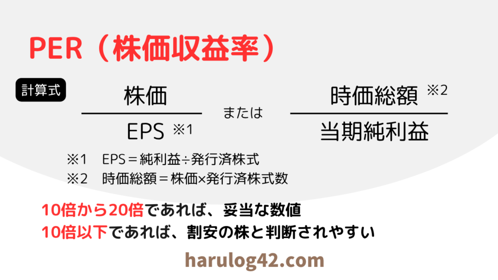 株価が企業の利益に対して割高か割安かを判断するための指標です。