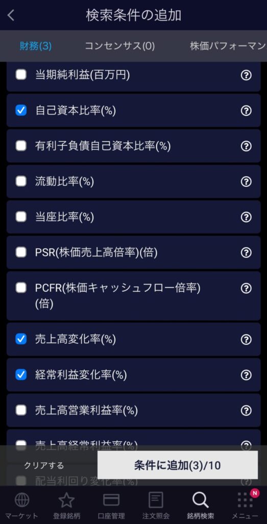 1.スクリーニング機能で成長株を一括検索!