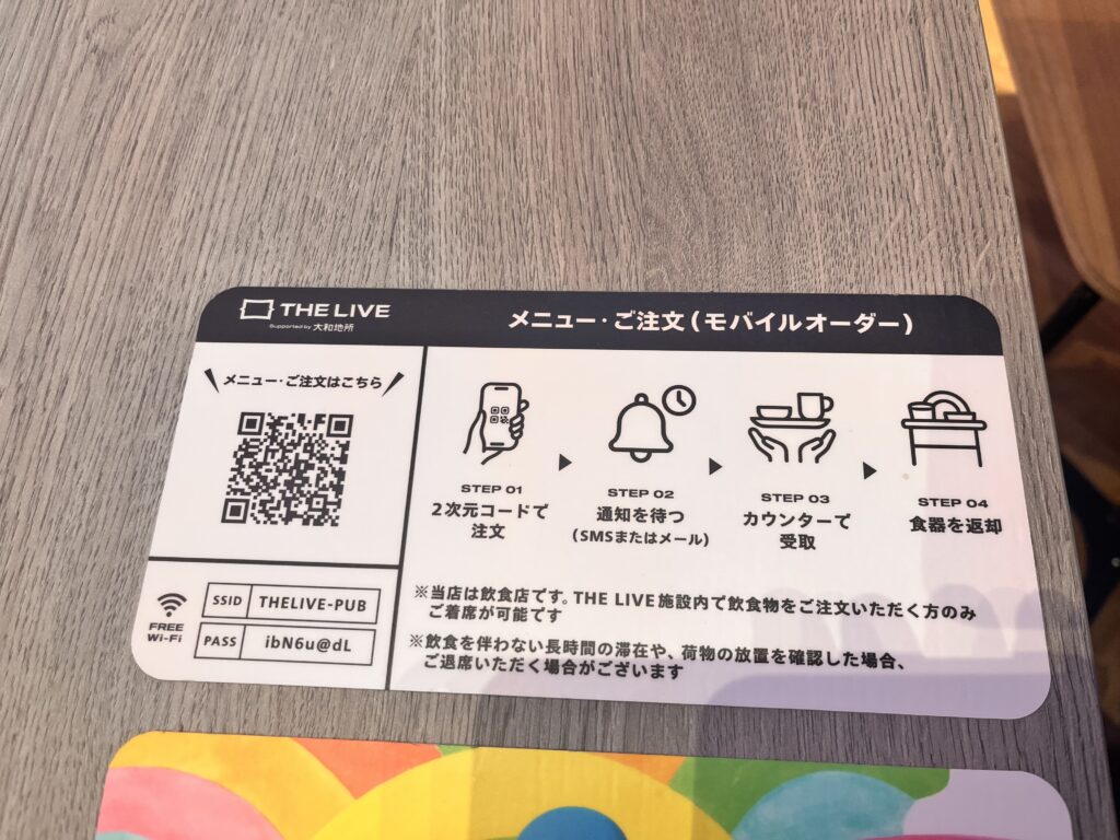 カウンターに店員さんがいない「無人販売所感」にビックリしましたが、カウンターに備え付けられたQRコードまたは席にあるQRコードを読み取れば注文ができます。